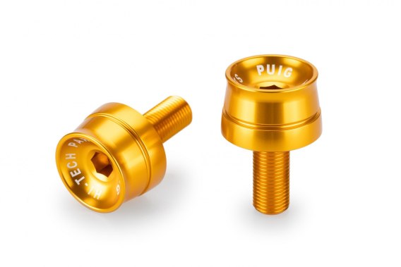 Anodyzowane końcówki kierownicy PUIG to doskonały dodatek tuningowy do każdego motocykla. W skład 1 kompletu wchodzą: 2 końcówki oraz potrzebne mocowania (zwykle są to 2 śruby mocujące i imbus do ich przykręcenia, chyba że kierownica wymaga innego mocowania). Ilustracja poglądowa. Fotografia prezentuje wygląd końcówek od strony zewnętrznej. Konkretne modele mogą się różnić mocowaniem (długość, rozmiar śruby, sposób wkręcania w kierownicę) - zawsze jest ono odpowiednie do motocykla.