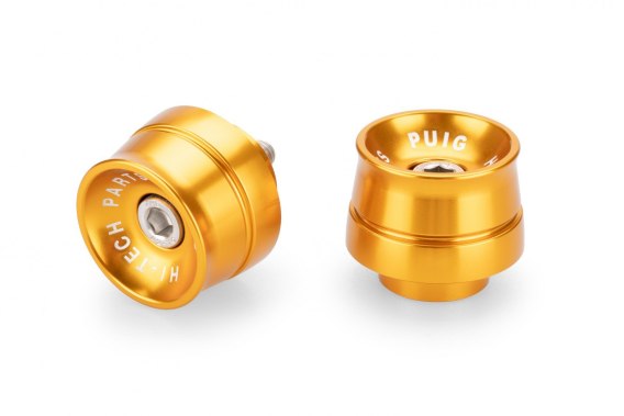 Anodyzowane końcówki kierownicy PUIG to doskonały dodatek tuningowy do każdego motocykla. W skład 1 kompletu wchodzą: 2 końcówki oraz potrzebne mocowania (zwykle są to 2 śruby mocujące i imbus do ich przykręcenia, chyba że kierownica wymaga innego mocowania). Ilustracja poglądowa. Fotografia prezentuje wygląd końcówek od strony zewnętrznej. Konkretne modele mogą się różnić mocowaniem (długość, rozmiar śruby, sposób wkręcania w kierownicę) - zawsze jest ono odpowiednie do motocykla.