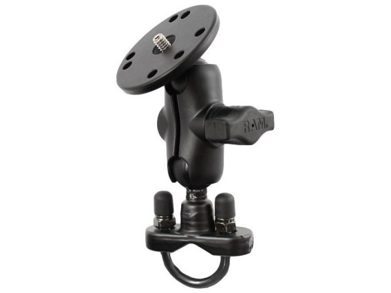 Uchwyt montowany do ramy kierownicy. Jest zintegrowany z ramieniem o długości 2.38 cala oraz z RAM-B-202AU - gumową kulą o średnicy 1 cala podłączoną z płaską, okrągłą podstawą o średnicy 2,5 cala zintegrowaną z ¼ -calowym gwintem do montażu kamery lub aparatu. Gwint pasuje do większości standardowych aparatów i kamer. Okrągła podstawa dodatkowo zapewnia stabilność zamontowanego urządzenia.
