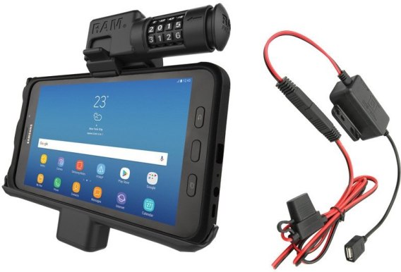 RAM-HOL-SAM7PCL-HARU - uchwyt do Samsung Galaxy Tab Active 8.0 & Tab Active2 z modułową ładowarką sieciową oraz blokadą antykradzieżową w postaci szyfru.